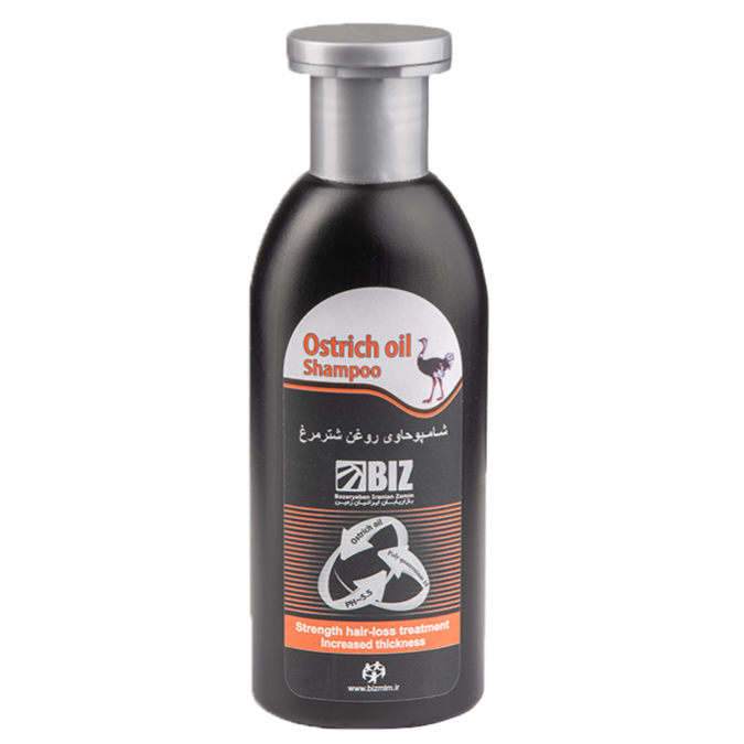 شامپو حاوی روغن شترمرغ بیز با بهره گیری از ترکیبات طبیعی به موها استحکام می بخشد، موی سر را از ریشه تا انتها قوی کرده، پوست سر را مرطوب نگه داشته و از پوسته شدن آن جلوگیری می نماید. این شامپو همچنین به افزایش سرعت رشد مو کمک بسیاری می کند. روغن شترمرغ موجود در این محصول بافت های سست شده مو را ترمیم کرده و موجب تحریک و رشد مو در همه ناحیه های سر می شود.